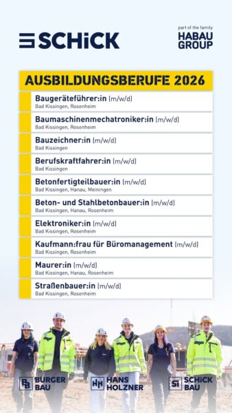 Alle Ausbildungsberufe für 2026 findest du im Beitrag und unter www.wirbauen.de 🙌🏼 Danke an @schick_wirbauen für die Unterstützung unserer Jugendarbeit 🙌 Wir freuen uns schon auf den offiziellen Schick-Cup vom 17. bis 19. Juli! ⚽️